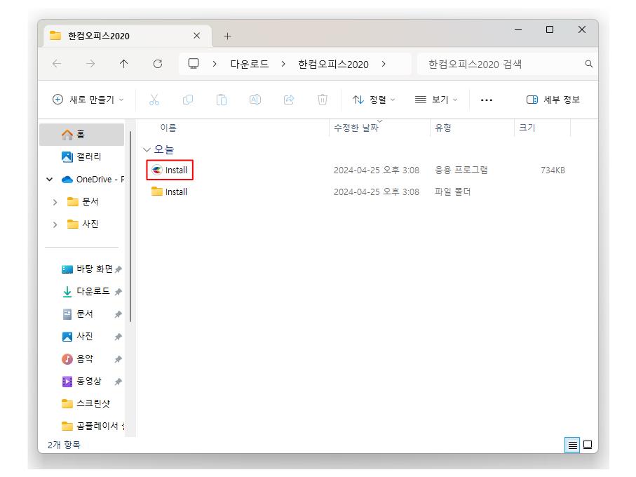 4. 압축을 푼 폴더에서 'Install'을 더블클릭합니다.