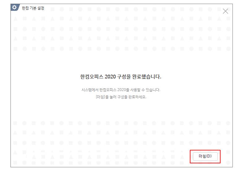 8. 한컴오피스 2020 설치가 완료되면 '설정'을 클릭합니다.