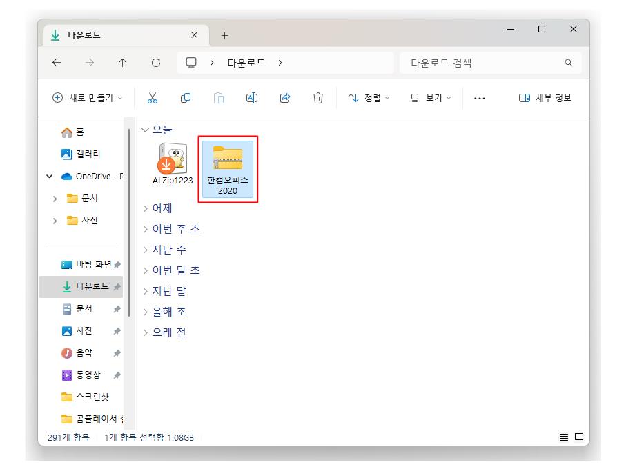 1. 위의 링크에서 한컴오피스 2020.zip를 다운받습니다.