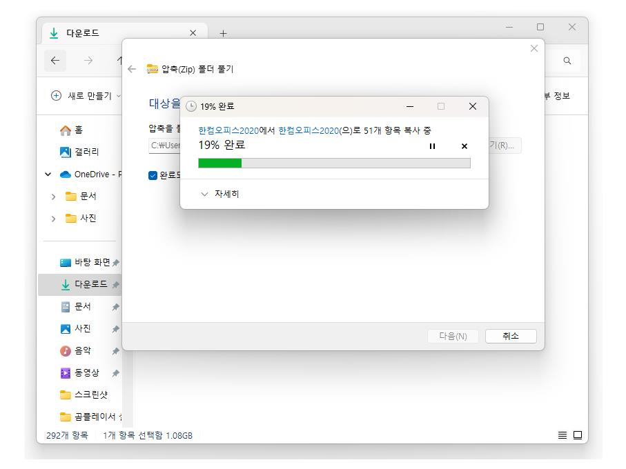 3. 다운로드받은 한컴오피스 2020 압축파일의 압축을 풀어줍니다.
